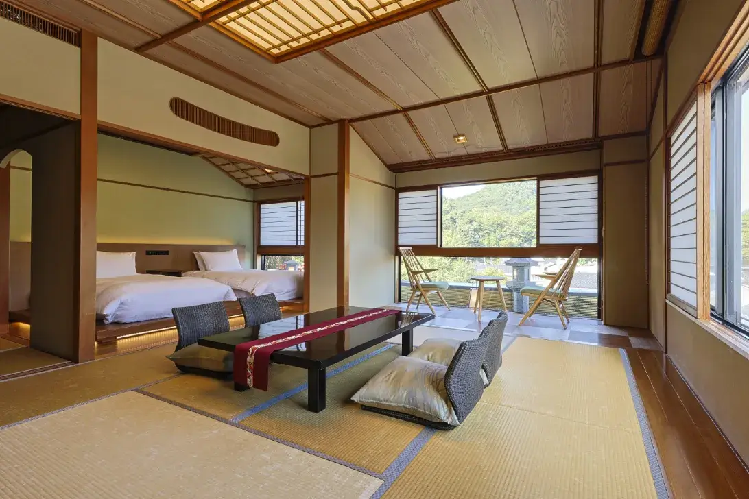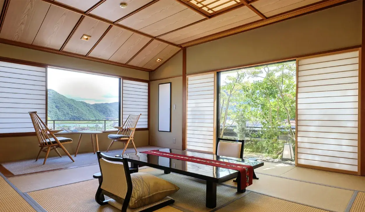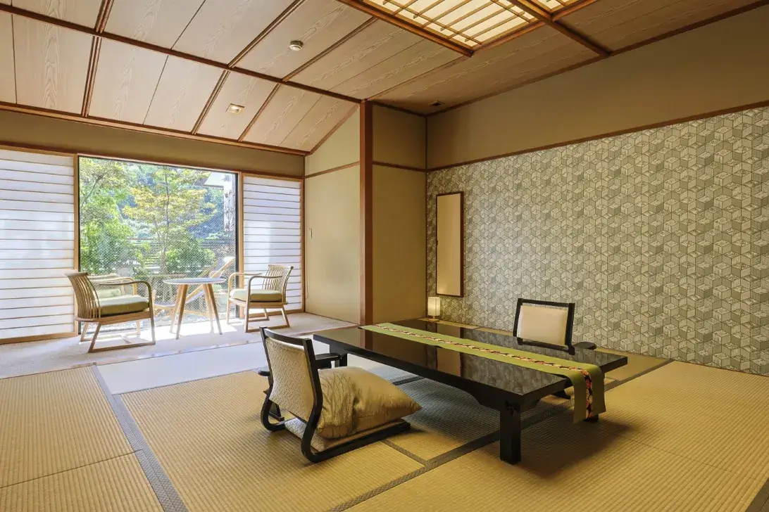 The guest rooms are pure Japanese style, notable for their refreshing tatami mats and the warmth of the shoji.